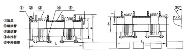 JXH型小拉桿橫向波紋補(bǔ)償器,由兩段波紋管,中間接管及帶有限位螺母的小拉桿等零件組成。小拉桿不能承受內(nèi)壓推理。JXH型小拉桿橫向波紋補(bǔ)償器可以補(bǔ)償彎曲管段的橫向位移和角項(xiàng)位移,同時(shí)可以補(bǔ)償軸向位移。JXH型小拉桿橫向波紋補(bǔ)償器安裝完后,務(wù)必將小拉桿上的落幕松開(kāi)并離開(kāi)耳片一段距離。